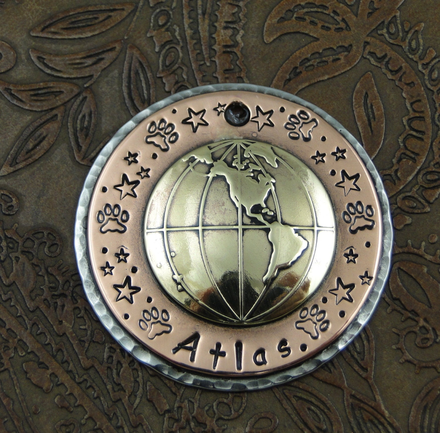 Atlas Dog Id Tag Pet Tag Personalized Dog Tag Dog Tag Etsy